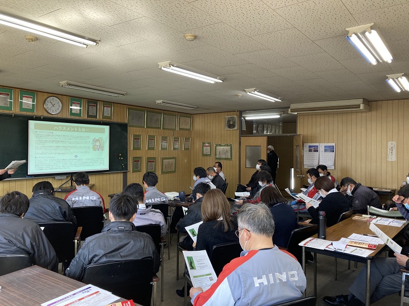 2月19日本社会議室、24日中村営業所にて全社員を対象としたパワハラ及びセクハラに関する講習会を社外講師を招いて実施しました。